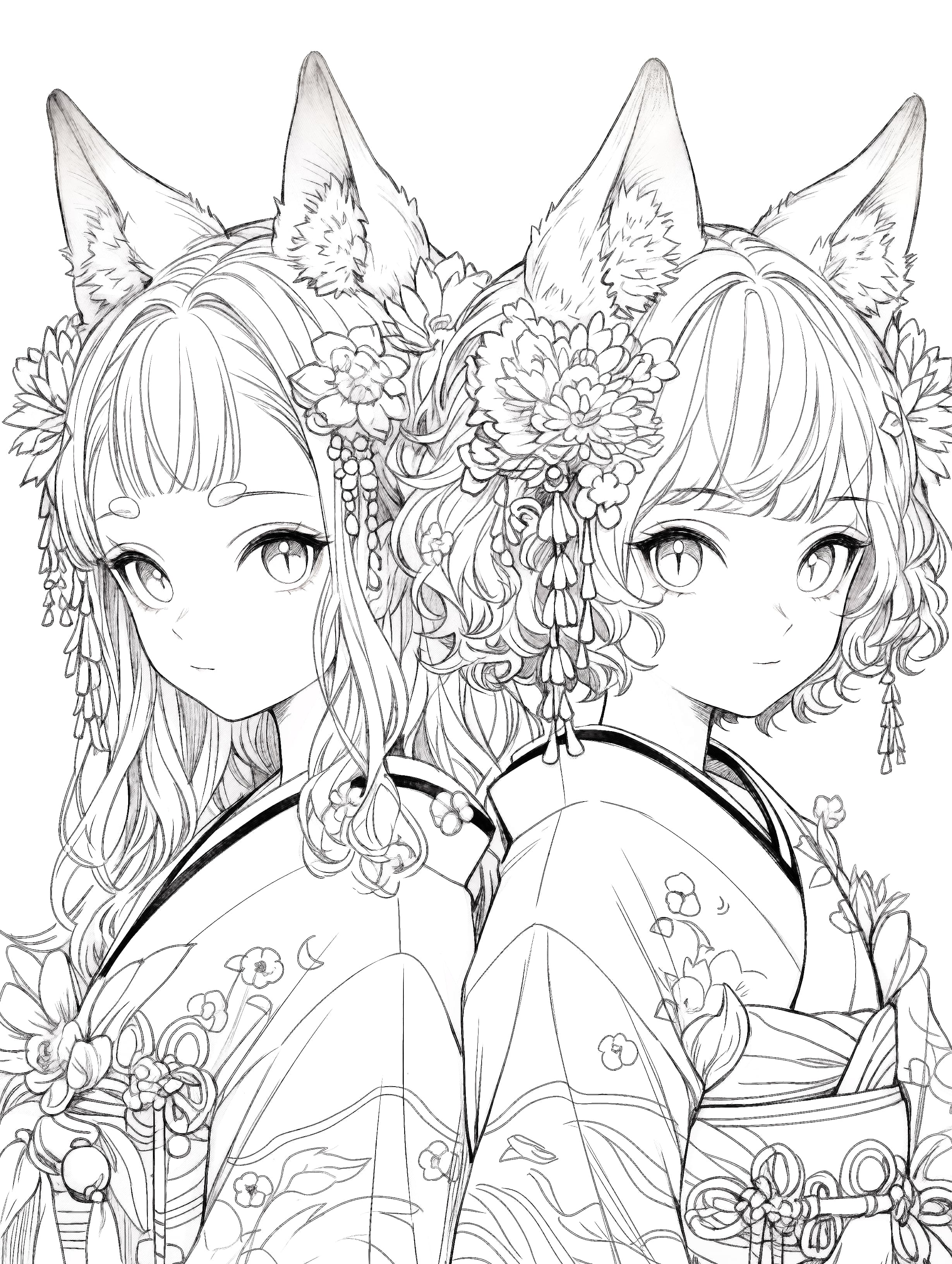 女の子 花 着物 和風 動物 ミニキャラ ファンタジー